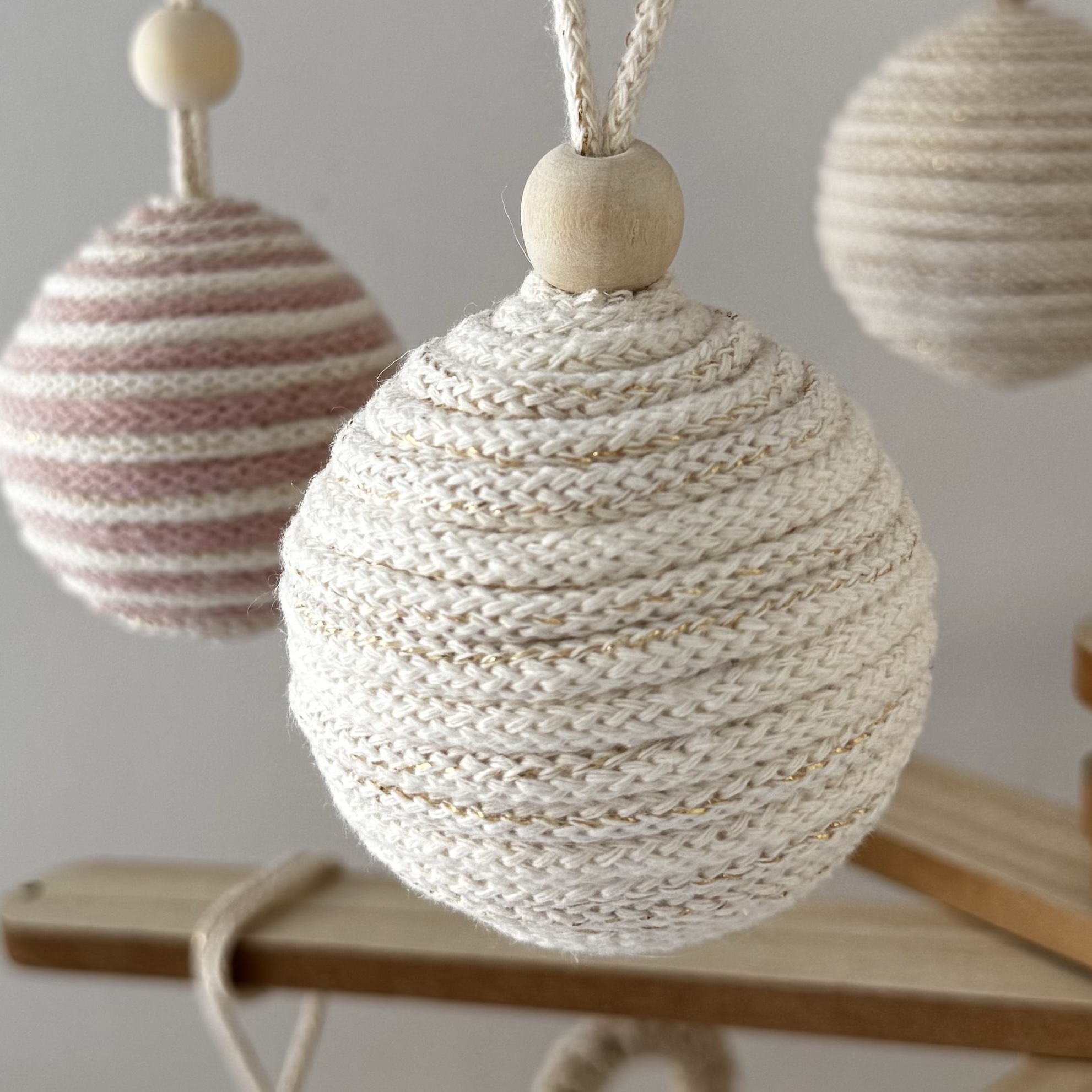 Chaque boule est soigneusement recouverte à la main, lui donnant un aspect cosy et naturel, parfait pour une décoration de style scandinave ou rustique.