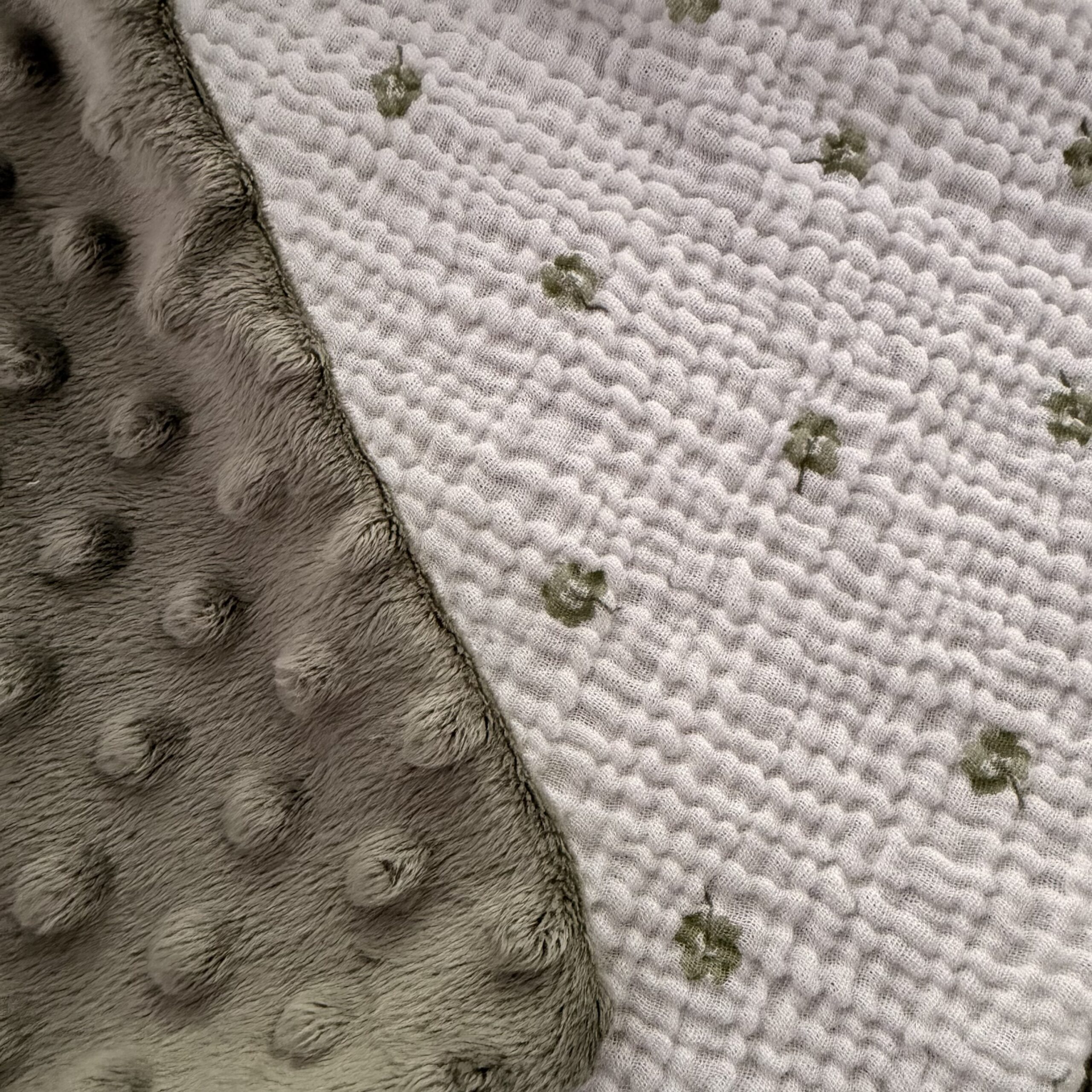 La taille du carré de tissus en milky et gaze de coton est de +/- 30 x 30 cm